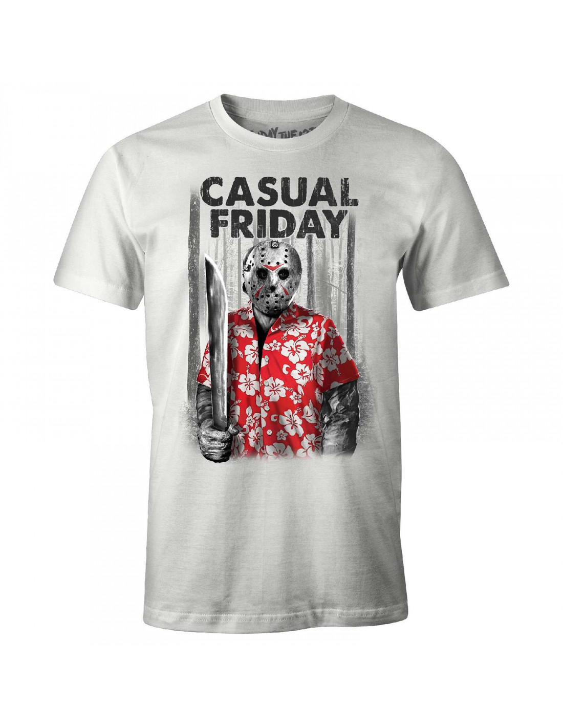 Oficiálně licencované pánské tričko s krátkým rukávem Pátek třináctého (Friday the 13th). Na potisku trička je vyobrazena postava Jason Voorhees. Triko je bílé barvy s krátkým rukávem a je vhodné ke každodennímu nošení.
