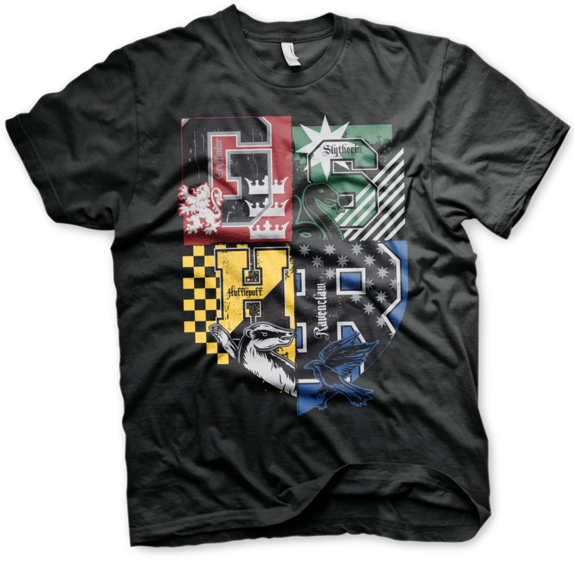 Oficiálně licencované pánské tričko Harry Potter - Bradavice (Hogwarts) - Nebelvír, Havraspár, Zmijozel a Mrzimor. Tričko je černé barvy a má krátký rukáv. Materiál je 100% bavlna. Skvělý doplněk do šatníku pro fanoušky Harryho Pottera.