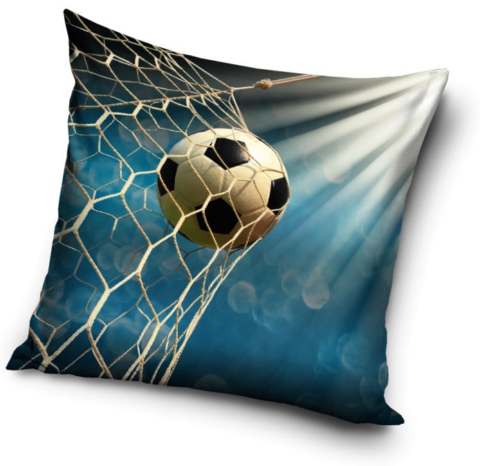 Povlak na polštář fotbalový míč v brance. Zkušený fotbalista právě dál gól a je čas se radovat! Skvělý doplněk do domácnosti všech fotbalových fanoušků - ať už hráčů, tak i těch, co se na něj dívají a fandí od televizních obrazovek.