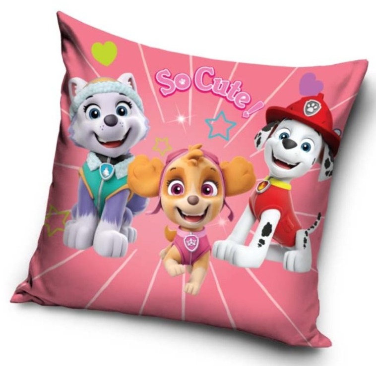 Povlak na polštář Tlapková patrola. Na povláčku jsou tři roztomilí pejsci a nápis So Cute. Oficiální licence.