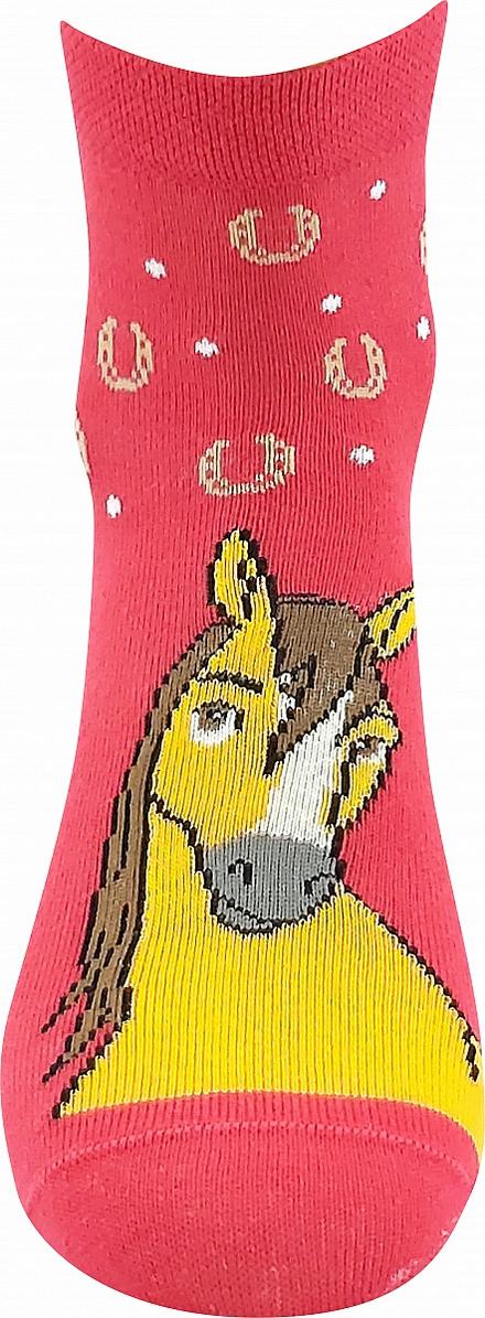 Roztomilé a veselé bavlněné dámské či dívčí ponožky, na kterých je hnědý koník. Ponožky kůň jsou vhodné na celodenní nošení, mají volný lem, který nestahuje nohy a neškrtí.