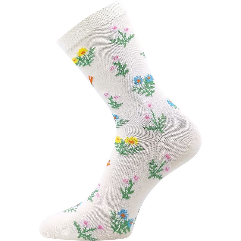 Roztomilé kvalitní dámské či dívčí světlé ponožky s květinami. Ponožky květinky jsou vhodné na celodenní nošení, navíc mají špičku spojenou plochým řetízkovým švem, který netlačí! Vysoký podíl bavlny v ponožkách zajistí to, že jsou příjemné na nošení.