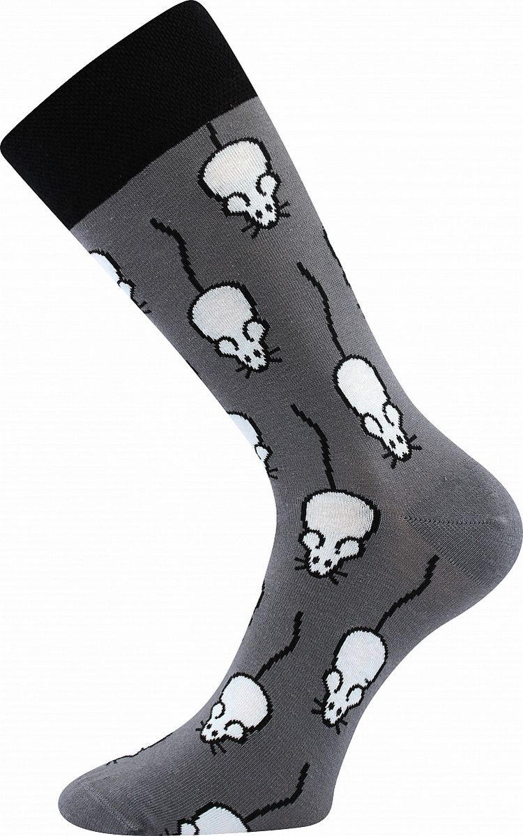 Stylové trendy bavlněné dámské i pánské ponožky s bílými myškami. Ponožky myš - myšky jsou kvalitní, originální a pohodlné. Ponožky jsou vhodné na celodenní nošení, mají volný lem, který nestahuje nohy a neškrtí.