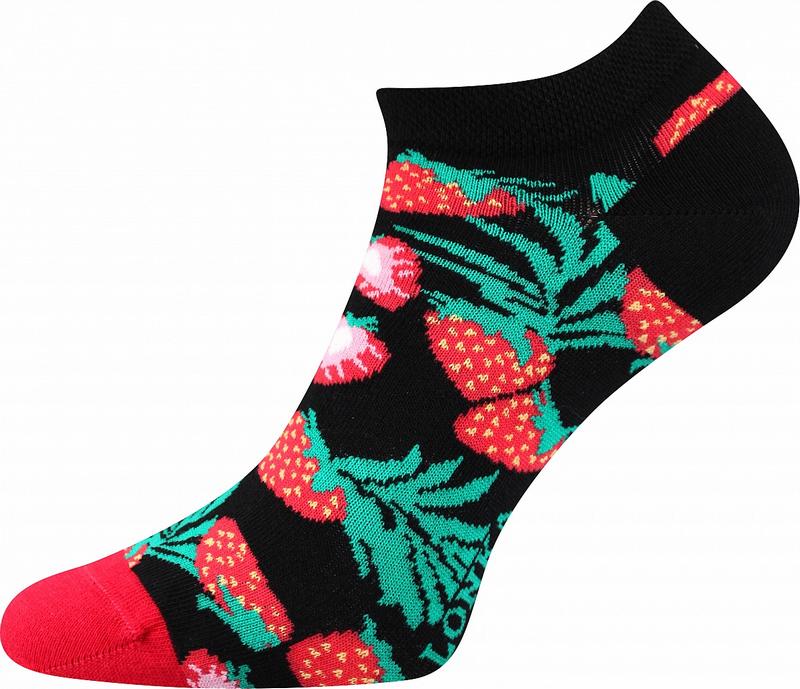 Stylové pohodlné dámské ponožky se šťavnatými červenými jahodami. Ponožky jahody jsou vhodné na celodenní nošení a skvěle se budou na nohách vyjímat převážně v létě.