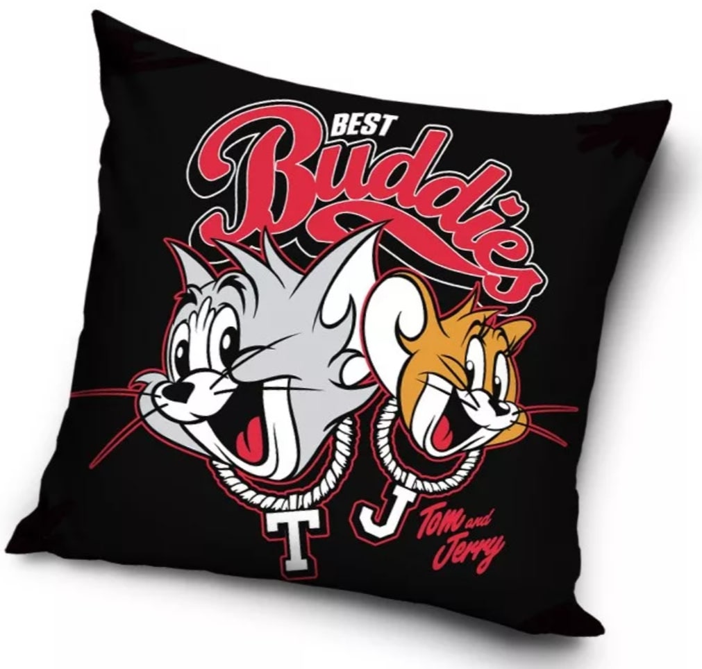 Dětský povlak na polštář z animáku Tom a Jerry. Kočička Tom a myška Jerry může zdobit na tomto povláčku i tvůj obyvák nebo pokojíček. Ačkoliv to tak možná vždy nevypadá, tak Tom a Jerry jsou nejlepší kámoši, o čemž značí i nápis na povlaku Best Buddies.