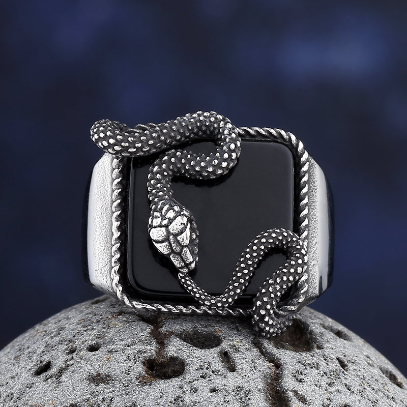 Ocelový prsten s hadem. Někdo se hadů bojí, jiný je miluje, had na tomto prstenu je však vhodný pro všechny - pro muže i ženy, pro děti i dospělé.