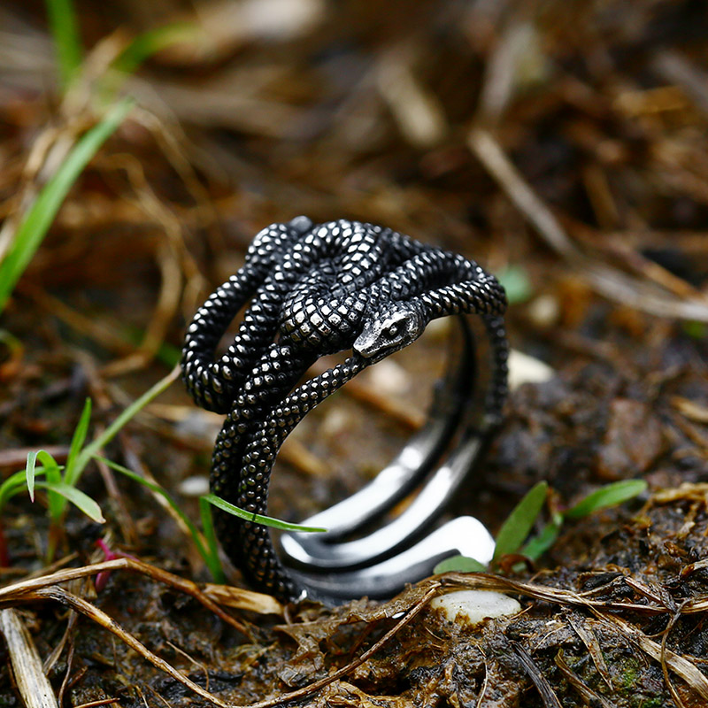 Ocelový prsten s hadem. Někdo se hadů bojí, jiný je miluje, had na tomto prstenu je však vhodný pro všechny. Díky odolnému materiálu (ocel) ho můžete nosit kamkoliv - klidně i do vody.