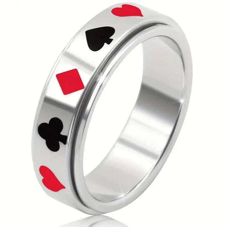 Nerez ocelový prstýnek s karetním motivem. Prsten karta je vhodný pro muže i ženy, co mají rádi karetní hry, ať už poker, žolíka, prší či jiné.  Varování: Nevhodné pro děti mladší 36 měsíců, obsahuje malé části, které by mohly být spolknuty nebo vdechnuty. Hrozí nebezpečí udušení! R... celý popis