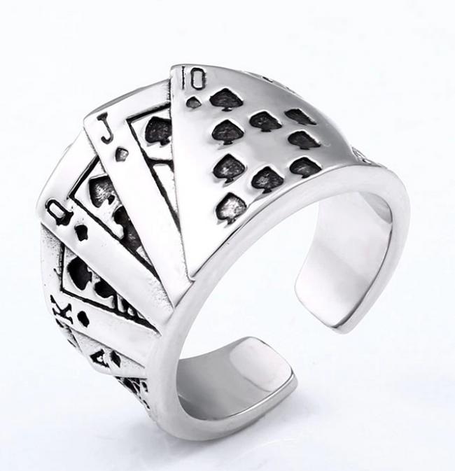 Nerez ocelový prstýnek karty. Prsten karty je vhodný pro muže i ženy, co mají rádi karetní hry.