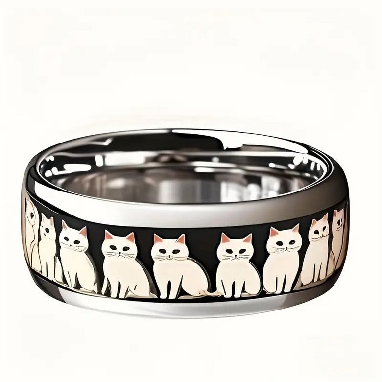Nerez ocelový prsten s kočkami. Prstýnek kočka je stříbrné barvy a je to skvělý dárek pro všechny milovníky koček.