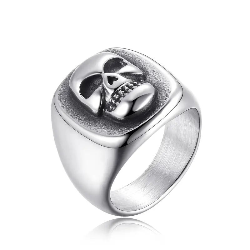 Nerez ocelový prsten s drsně vypadají lebkou. Prstýnek lebka je vhodný pro motorkáře, rockery, metalisty a jiné drsňáky. Mohou ho nosit muži i ženy.