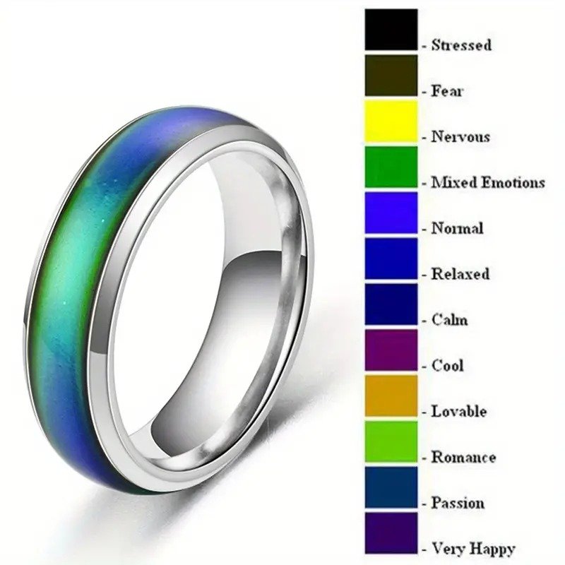 Ocelový prstýnek nálady. Prsten mění barvu dle teploty lidského těla a ukazuje tvou náladu.