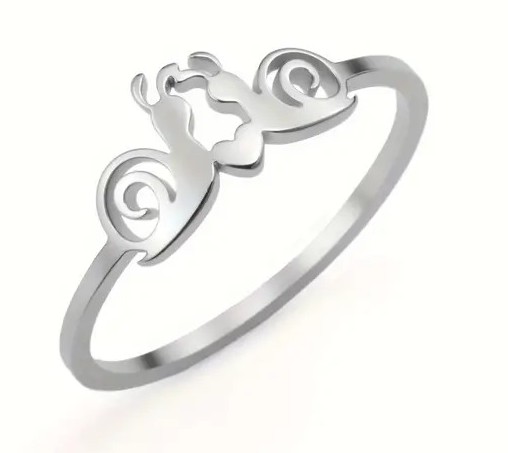 Nerez ocelový prsten se šnečkem, respektive 2 šneky. Uprostřed šneků je srdíčko, co značí, že jsou zamilovaní. Prsten šneček je vhodný pro děti i dospělé.  Varování: Nevhodné pro děti mladší 36 měsíců, obsahuje malé části, které by mohly být spolknuty nebo vdechnuty. Hrozí nebezpečí udušení! ... celý popis