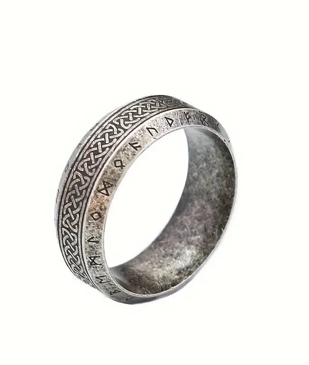 Ocelový prsten vikingské runy. Prstýnek viking - runy je stříbrné barvy a působí starodávným dojmem. Je vyroben z kvalitní oceli, takže si ho můžete vzít i do sprchy nebo do vany :) Tento vikingský prsten je vhodný pro muže i ženy.