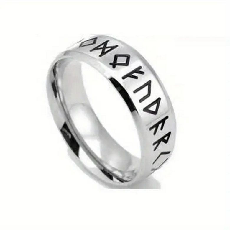 Ocelový prsten vikingské runy. Prstýnek viking - runy je stříbrné barvy. Je vyroben z nerez oceli, takže si ho můžete vzít i do sprchy nebo do vany :) Tento vikingský prsten je vhodný pro muže i ženy.