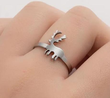 Ocelový prstýnek stříbrné barvy s jelenem. Prsten jelen je vhodný pro muže i ženy, pro myslivce, nebo jenom milovníky zvířat - jelenů.