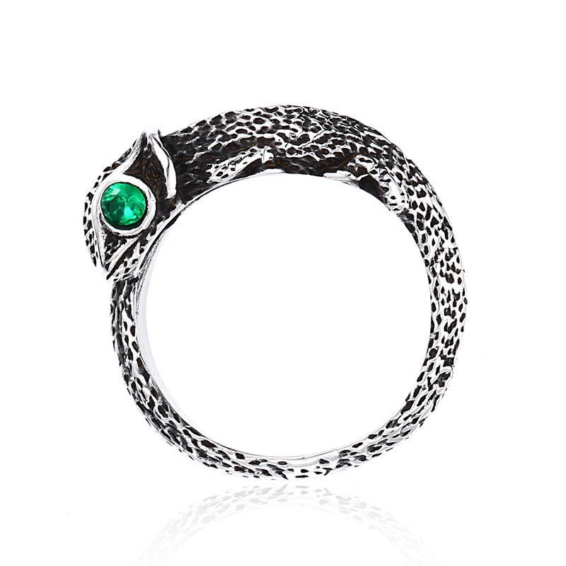 Nerez ocelový prstýnek stříbrné barvy s ve tvaru ještěrky se zeleným okem. Prsten ještěrka je vhodný pro muže i ženy. Je originálně vytvarovaný tak, že z ještěrčina ocasu se stane kroužek a tím vznikne prsten.