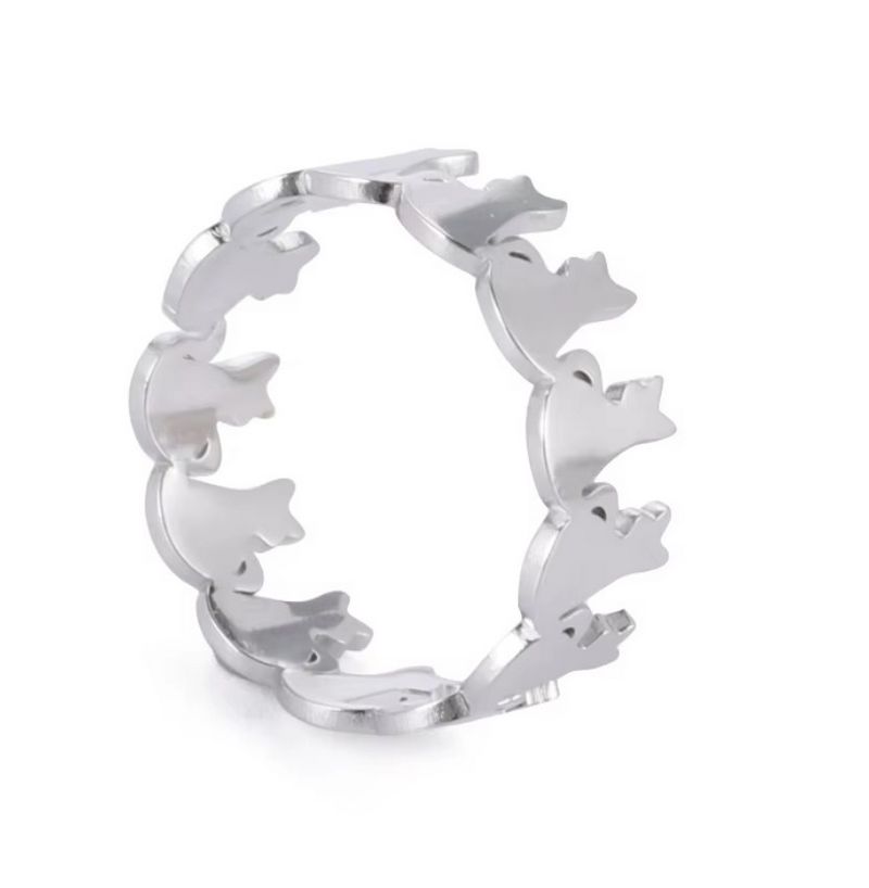 Ocelový prsten s několika kočičkami. Prstýnek kočka je stříbrné barvy a je to skvělý dárek pro všechny milovníky koček.