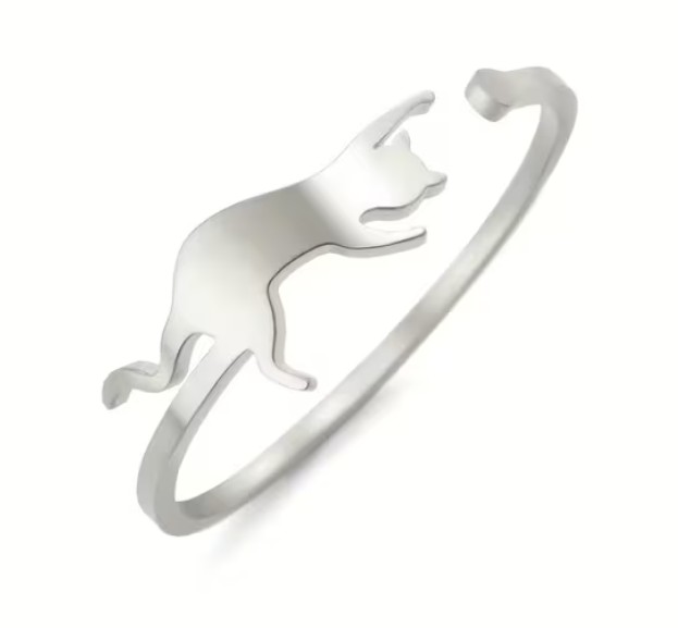 Nerez ocelový prsten s kočičkou. Prstýnek kočka je stříbrné barvy a je to skvělý dárek pro všechny milovníky koček. Průměr je nastavitelný - nejméně 1,8 cm, více lze roztáhnout.