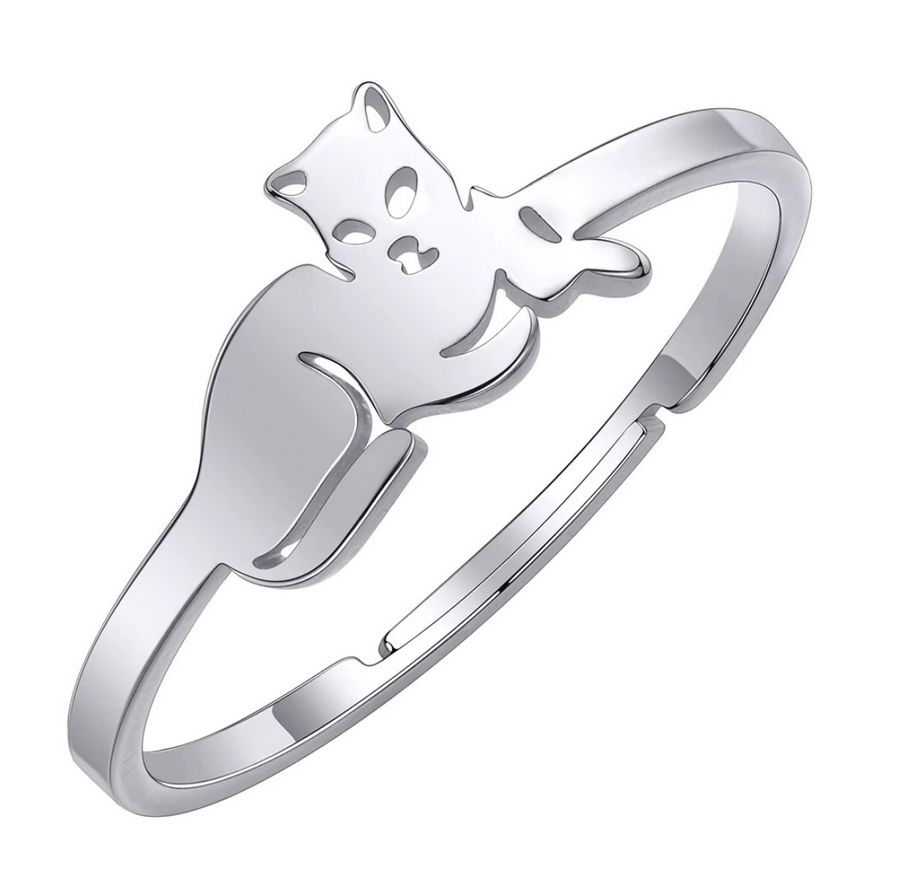 Ocelový prsten s roztomilou kočičkou. Prstýnek kočka je stříbrné barvy a je to skvělý dárek pro všechny milovníky koček.