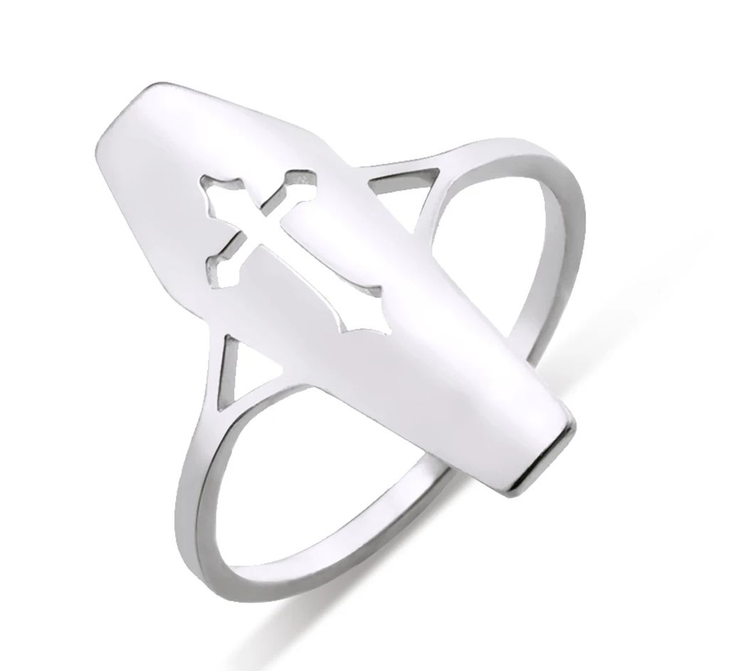 Ocelový prstýnek / prsten rakev. Prstem je vhodný do sprchy, na sport...