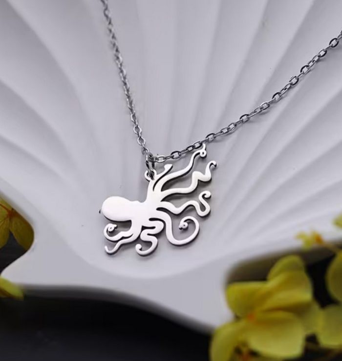 Ocelový náhrdelník a přívěšek s chobotnicí. Řetízek chobotnice je skvělý dárek pro všechny milovníky mořského života.