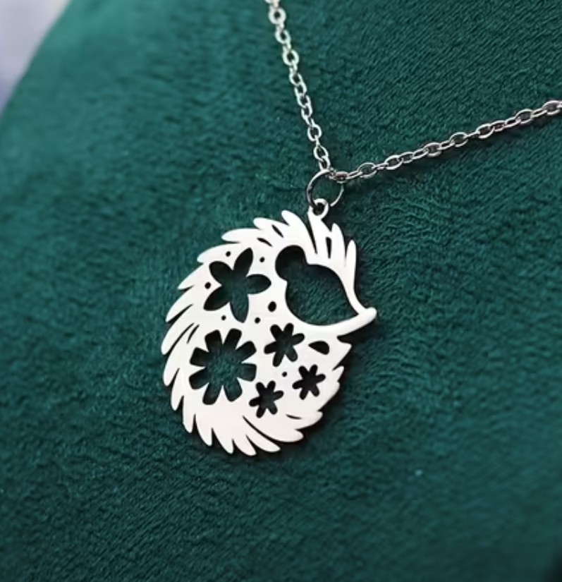 Ocelový náhrdelník a přívěsek s ježečkem.