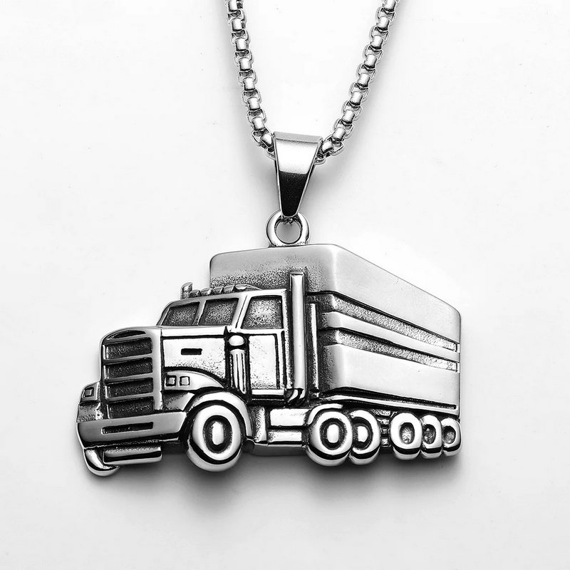 Ocelový řetízek a přívěšek ve tvaru kamionu. Náhrdelník kamion - velký nákladní automobil je super dárek pro každého kamioňáka, nebo milovníka velkých aut.