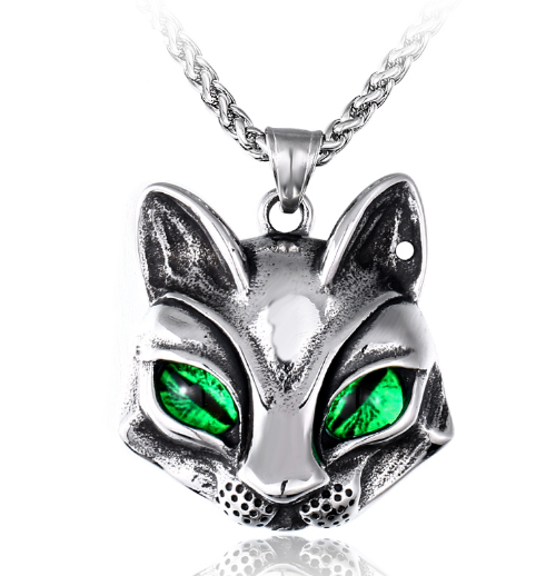 Řetízek kočka (ocel) - zelené oči