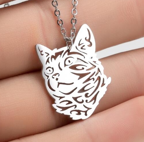 Romantický náhrdelník a přívěsek se stříbrnou kočkou. Přívěsek je ve tvaru hlavy kočky. Kočíčí přívěsek je vhodný šperk pro všechny milovníky koček.
