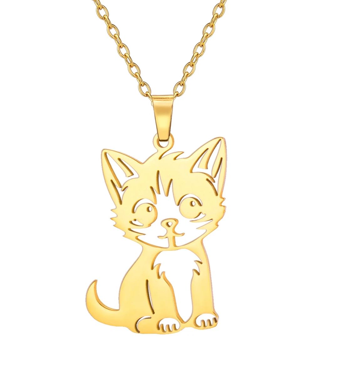 Ocelový náhrdelník a přívěsek roztomilá malá kočka. Kočičí řetízek a přívěsek je vhodný šperk pro všechny milovníky koček.