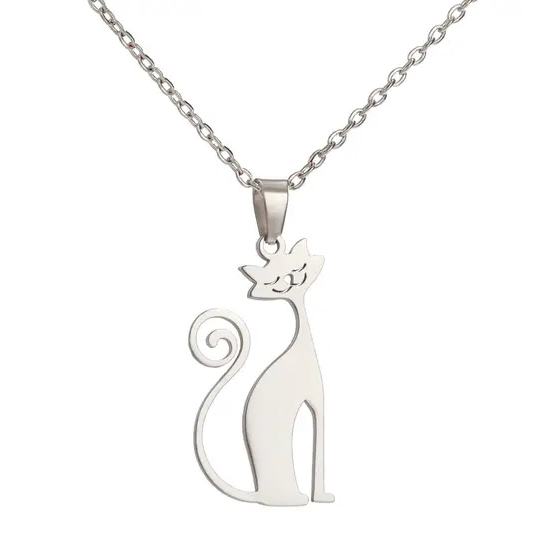 Ocelový náhrdelník a přívěsek kočka. Kočičí řetízek a přívěsek je vhodný šperk pro všechny milovníky koček.
