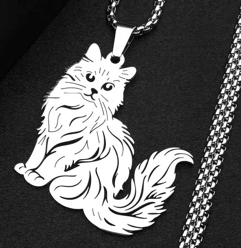 Ocelový náhrdelník a přívěsek kočka. Kočičí řetízek a přívěsek je vhodný šperk pro všechny milovníky koček.