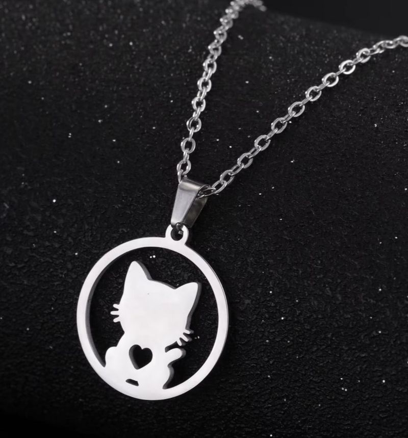 Ocelový náhrdelník a přívěsek kočka. Kočičí řetízek a přívěsek je vhodný šperk pro všechny milovníky koček.