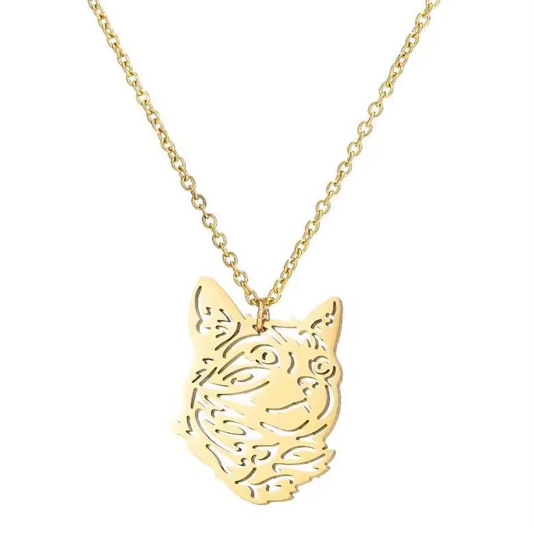 Romantický náhrdelník a přívěsek se zlatou kočkou. Přívěsek je ve tvaru hlavy kočky. Kočíčí přívěsek je vhodný šperk pro všechny milovníky koček.