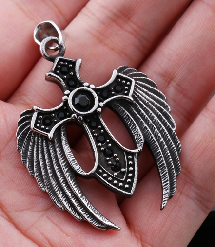 Řetízek kříž s křídly (ocel) čn