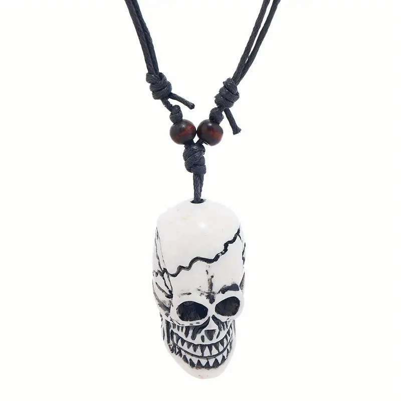 Náhrdelník a přívěsek s bílou lidskou lebkou. Řetízek lebka má nastavitelnou délku řetízku na 44-70 cm.