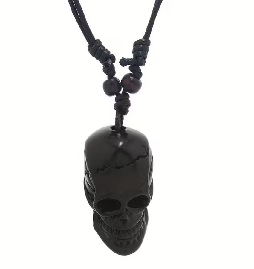 Náhrdelník a přívěsek s černou lidskou lebkou. Řetízek lebka má nastavitelnou délku řetízku na 44-70 cm.