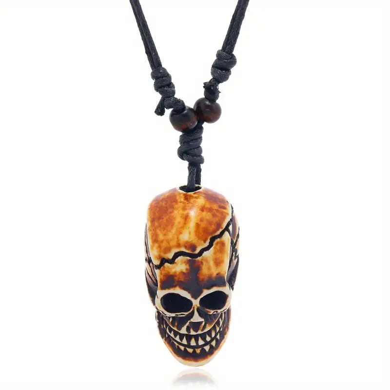 Náhrdelník a přívěsek s hnědou lidskou lebkou. Řetízek lebka má nastavitelnou délku řetízku na 44-70 cm.