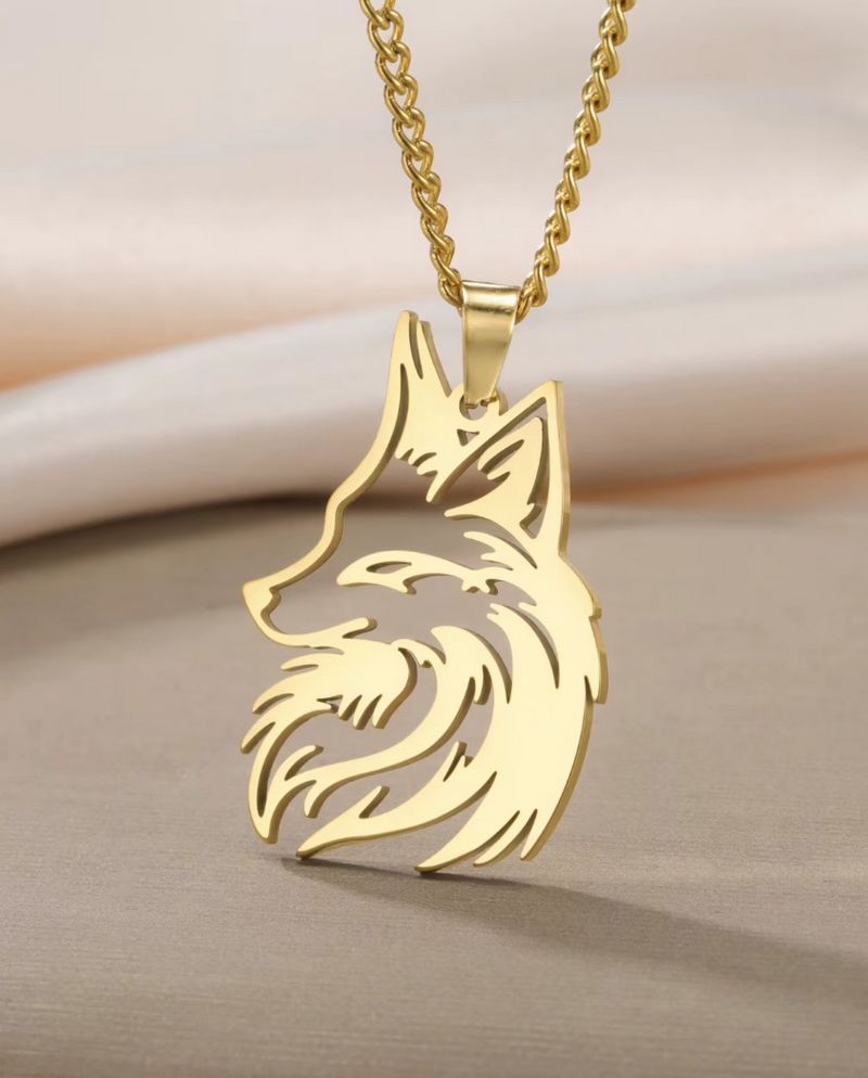 Řetízek a přívěšek / náhrdelník liška - ocelový. Možno nosit do sprchy, při sportu...