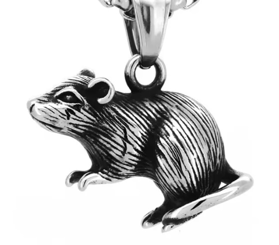 Ocelový náhrdelník a přívěsek s hlodavcem - myškou. Řetízek myš je vhodný pro všechny milovníky myší.