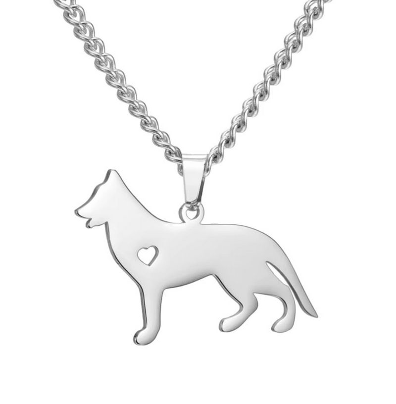 Ocelový náhrdelník a přívěsek s velice oblíbeným a přátelským psím plemenem německým ovčákem. Řetízek německý ovčák je vhodný pro všechny milovníky tohoto velice chytrého plemene. Díky kvalitnímu materiálu si ho můžete vzít téměř kamkoliv - klidně i do vody.