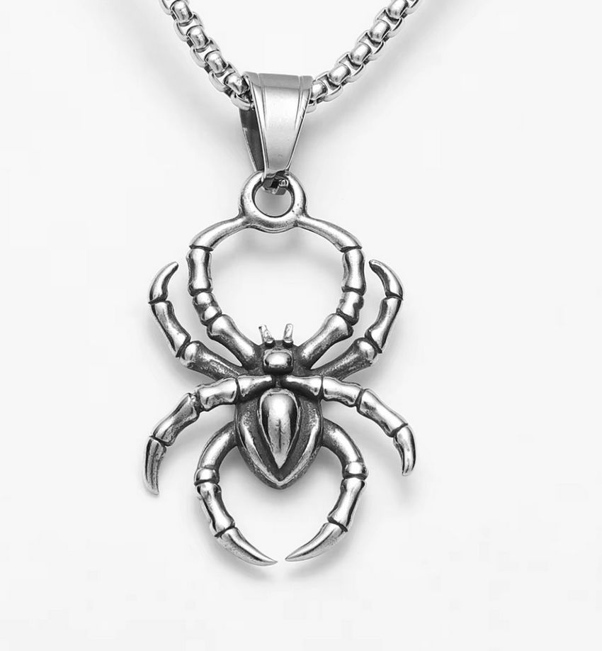 Nerez ocelový náhrdelník a přívěsek pavouk. Řetízek s pavoukem, co má osm nožiček, je vhodný pro lidi, co pavouky milují, nebo se jich možná i kapku bojí a chtějí se svého strachu zbavit.