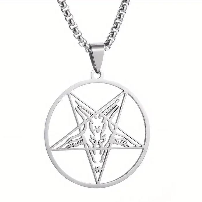 Ocelový náhrdelník a přívěsek pentagram s kozlem - Baphomet - Behemot. Řetízek s pentagramem a kozlem je většinou považován za symbol satanismu a ďábla.