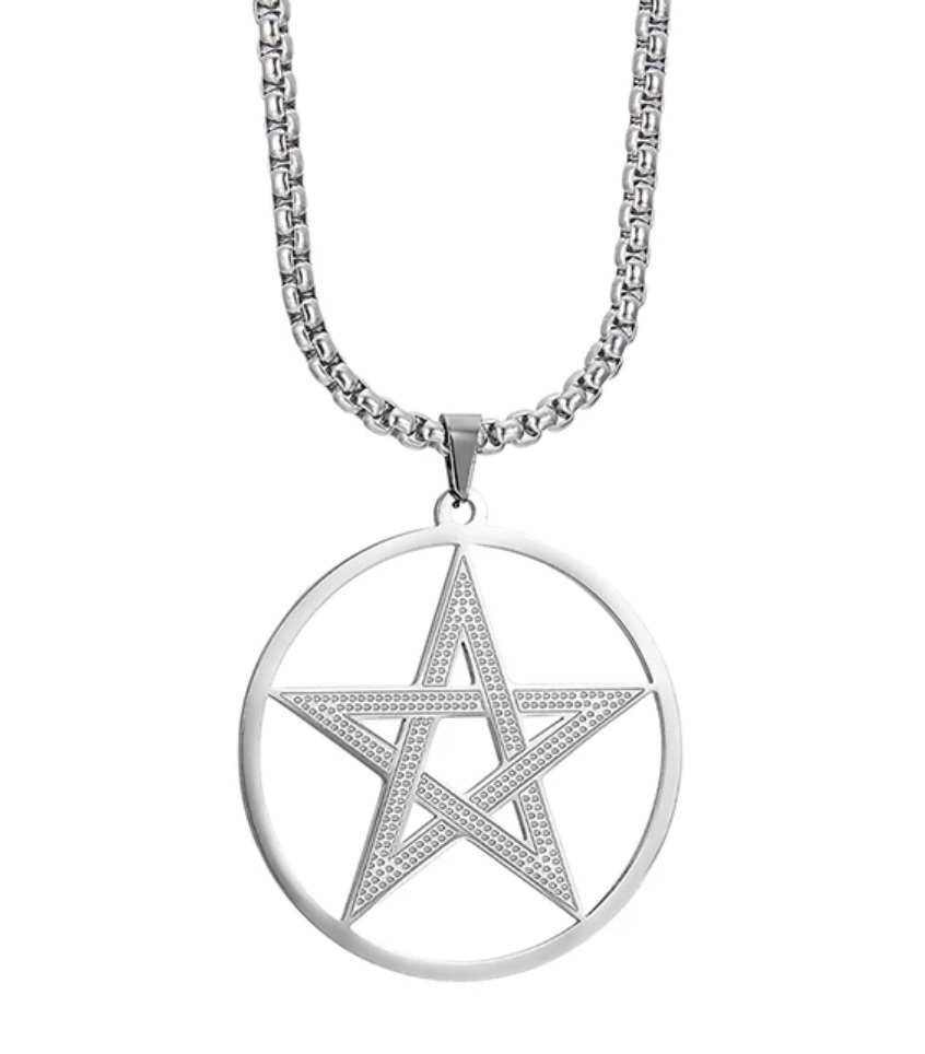 Ocelový náhrdelník a přívěsek s pentagramem.