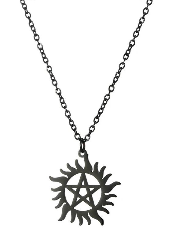 Ocelový náhrdelník a přívěsek Supernatural (Lovci duchů) - symbol pentagramu. Náhrdelník a přívěsek s pentagramem je černé barvy.