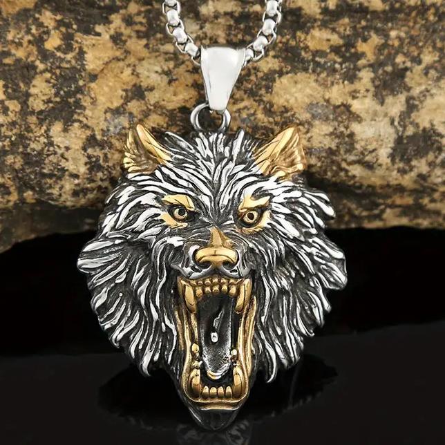 Ocelový náhrdelník a přívěsek s vlkem. Řetízek vlk je převážně stříbrné barvy, ale má na sobě prvky zlaté, které zvýrazňují jeho jednotlivé části - uši, oči, čumák, zuby. Tento řetízek vlk patří mezi věci s vlkem, které potěší každého milovníka těchto zvířat. Díky kvalitnímu materiálu můžete přívěsek nosit téměř kdykoliv a kamkoliv, klidně i do vody!