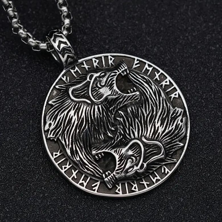 Ocelový náhrdelník a přívěsek s vlkem - vlky. Tento řetízek vlk patří mezi věci s vlkem, které potěší každého milovníka těchto zvířat. Díky kvalitnímu materiálu můžete přívěsek nosit téměř kdykoliv a kamkoliv, klidně i do vody! Na přívěsku také vidíme runy.