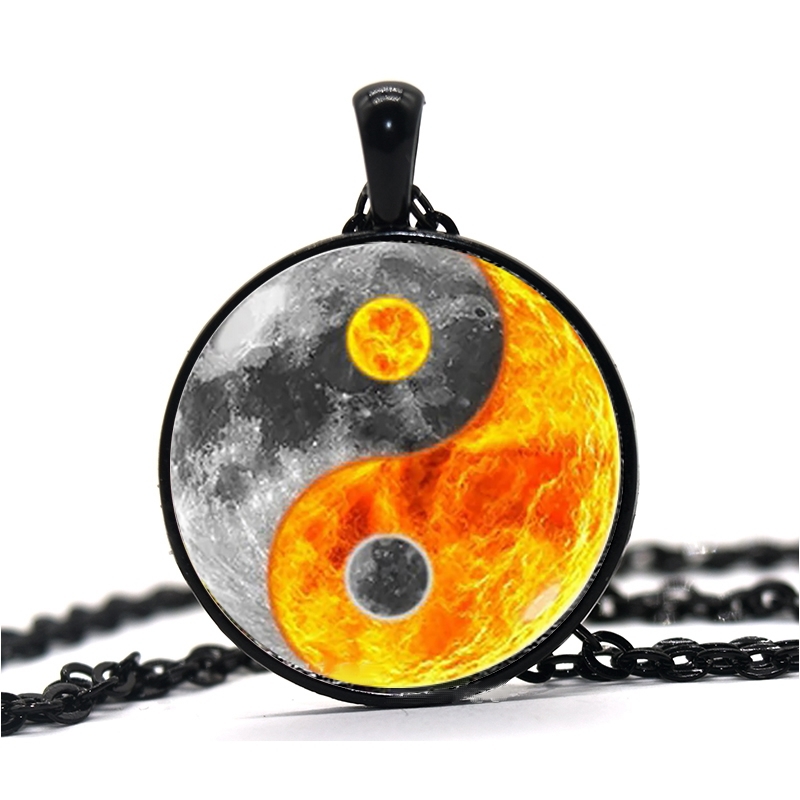 Stříbrný náhrdelník a přívěsek Yin a Yang (Jin a Jang) znázorňující odvrácené strany temnoty a světla.