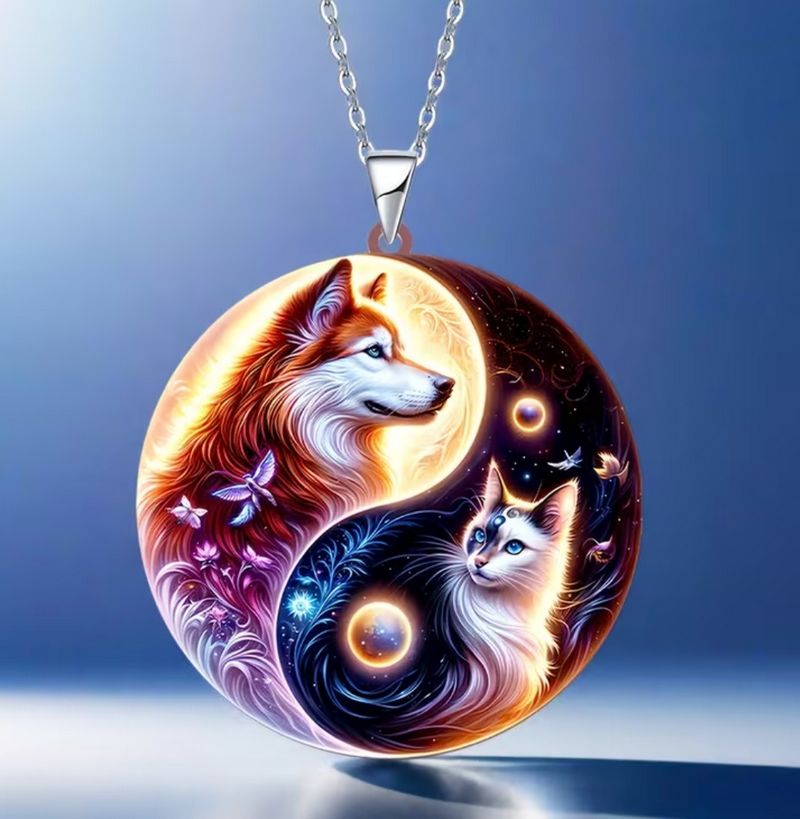 Řetízek Yin yang (jin a jang) - kočka a vlk.